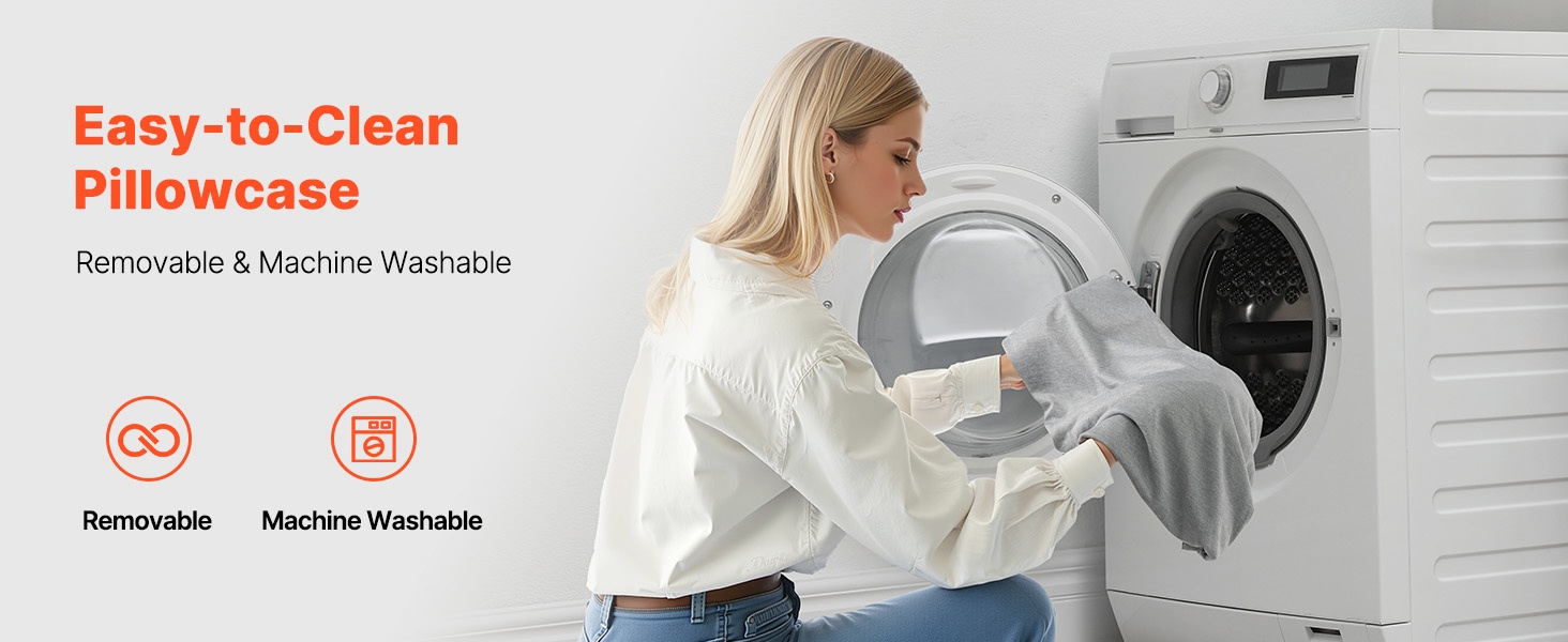Kokovartalotyynyn päällinen on irrotettava ja konepestävä, joten puhtaanapito on vaivatonta. Avaa vetoketju, laita päällinen pesuun ja saat käyttöösi raikkaan, puhtaan tyynyn kerta toisensa jälkeen.