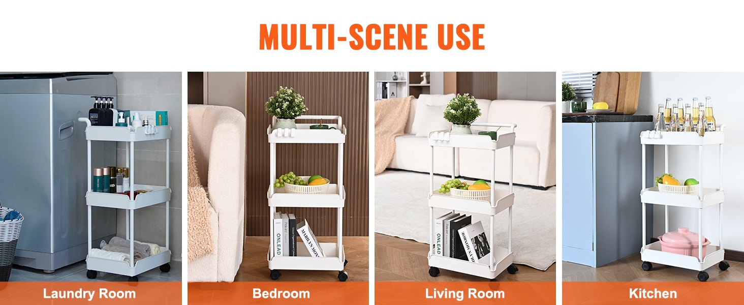 Monikäyttöinen rullakärry sopii esimerkiksi keittiövälineille, puhdistustarvikkeille, kirjoille, kosmetiikalle, pyyhkeille tai lasten tavaroille. Se auttaa pitämään eri tilat siistimpinä ja paremmin organisoituina.