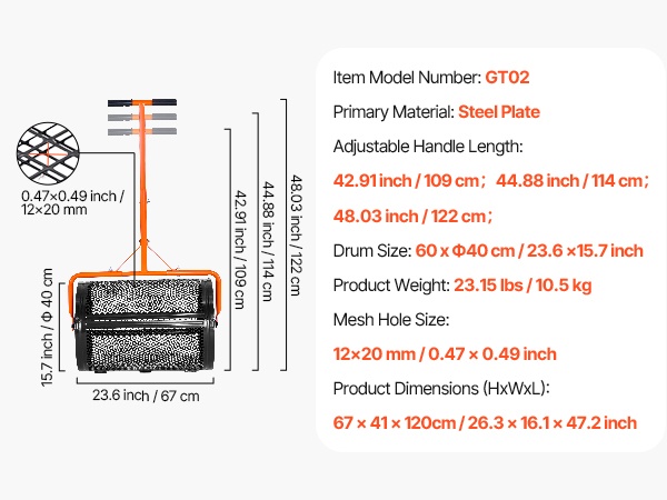 - Rummun koko: 60 x Ф40 cm / 23.6 × 15.7 inch