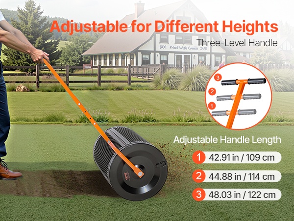 Kompostinlevitin 24 tuuman jauhemaalatulla teräsrungolla säädettävällä T-kahvalla nurmikolle