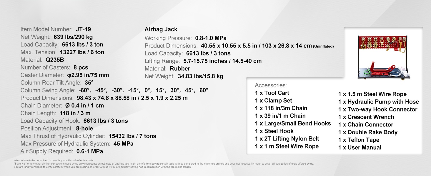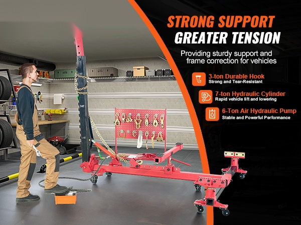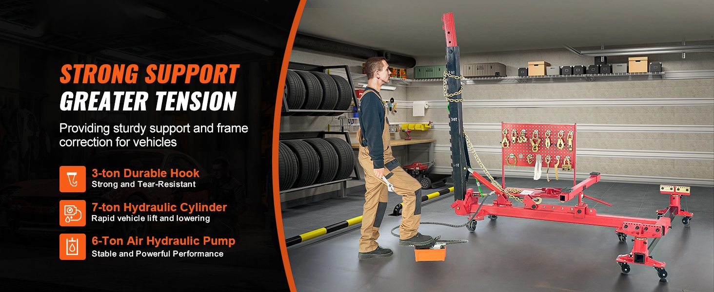 Ajoneuvojen korin oikaisuun suunniteltu runkovetolaite on valmistettu lujasta teräksestä, joka tarjoaa korkean kantavuuden ja pitkän käyttöiän. Settiin kuuluu kääntyvä tolppa, hydraulinen jalkapumppu, ilmatyynynostin ja vetoleukasarja, joilla voidaan käsitellä erilaisia vetokohteita.