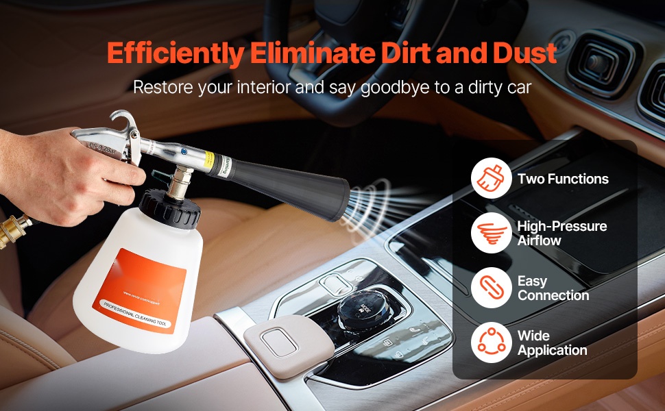 Tornado-puhdistuspyssy soveltuu esimerkiksi auton istuimille, ovien saumoihin, sisäpinnoille ja peileihin. Se auttaa poistamaan likaa ja tahroja vaikeapääsyisistä kohdista ja parantaa sisätilojen yleisilmettä.