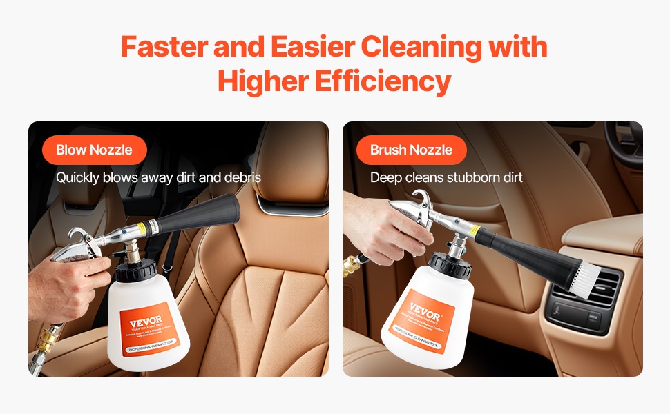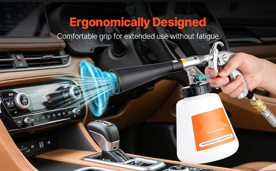 Tämä vortex-puhdistuspyssy yhdistää 1L säiliön, kaksi suutinta (suihkusuutin lian poistoon, puhallussuutin pölyn poistoon), 6–9.2 barin paineen ja 360° pyörivän suuttimen perusteelliseen puhdistukseen ilman väliin jääviä kohtia. Paineilmapyssy on yhteensopiva 1/4 NPT -liittimien kanssa ja sopii useimpiin ilmakompressoreihin.
