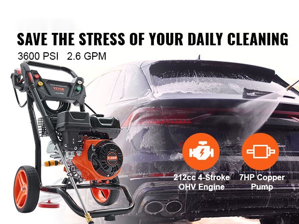 - Maksimipaine: 4400 PSI tehokkaaseen pinttyneen lian poistoon