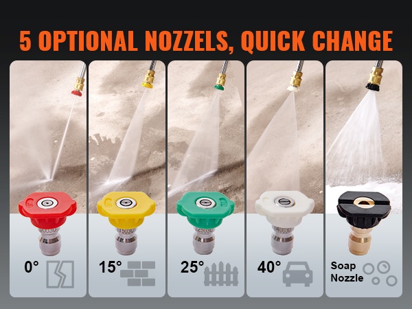 - 5 pikaliitettävää suutinta eri käyttökohteisiin (0° / 15° / 25° / 40° / saippuasuutin)