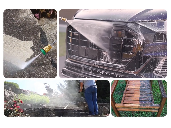 Korkea 4400 PSI -paine poistaa vanhaa maalia, öljyä, rikkaruohoja ja muuta pinttynyttä likaa. Soveltuu esimerkiksi talon ulkoseinille, terasseille, laitureille, ajoteille, aidoille, autotallin lattioille, pihakalusteille ja ajoneuvoille.