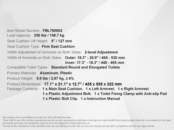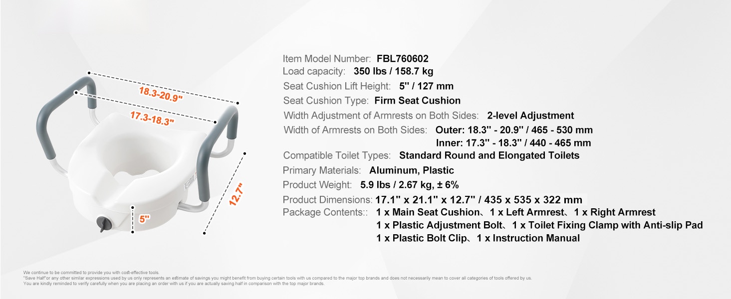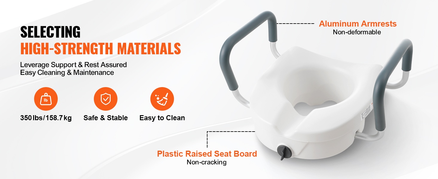 - Korotus: 6" / 150 mm – helpottaa istuutumista ja ylösnousemista