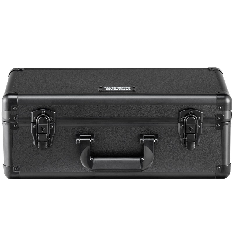 Korttilaatikko alumiiniseosrunkoinen 4 leveää lokeroa 108 PSA-korttia avainlukolla vaahtomuovivälilevyin