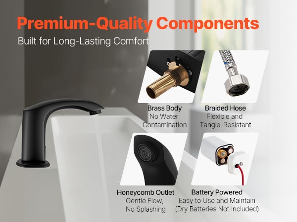 Kestävästä materiaalista valmistettu hana ja taipuisa, taittumista vastaan suunniteltu punottu letku varmistavat tasaisen vedenvirtauksen. Hunajakennoilmastin pehmentää vesisuihkua ja vähentää roiskeita miellyttävämpää käsienpesua varten.