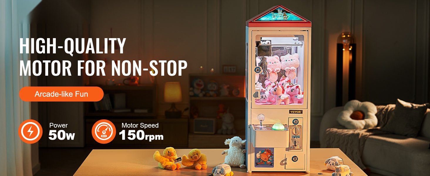 Korkealaatuinen moottori tarjoaa pelihallin kaltaisen, tasaisen käyttökokemuksen. 50W teho ja 150 rpm moottorin nopeus takaavat pitkään kestävän, vakaan toiminnan esimerkiksi lastenhuoneessa, odotustiloissa tai tapahtumissa.