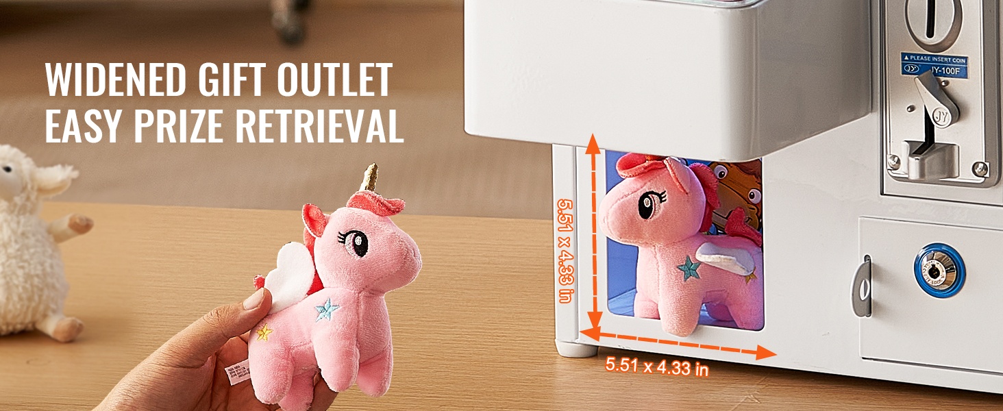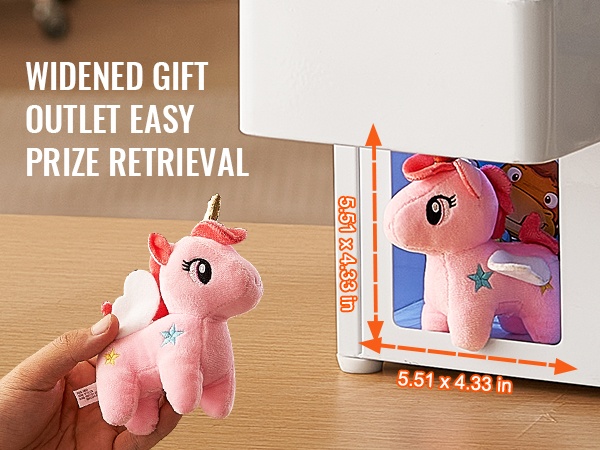 Levennetty palkintoaukko helpottaa voitettujen esineiden poimimista. Palkinnot liukuvat ulos sujuvasti, ja jokainen onnistunut yritys tuntuu palkitsevalta, kun lelut ja yllätykset saa kerättyä vaivattomasti.
