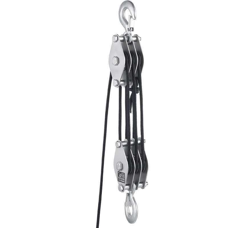 Nostaa jopa 1100 lbs / 500 kg vaivattomasti. Tämä köysitalja helpottaa raskaiden taakkojen käsittelyä, olipa kyse työkaluista, huonekaluista tai laitteista. Murtolujuus on 4400 lbs / 2 T, joten järjestelmä soveltuu vaativiin nostoihin toistuvaan käyttöön.