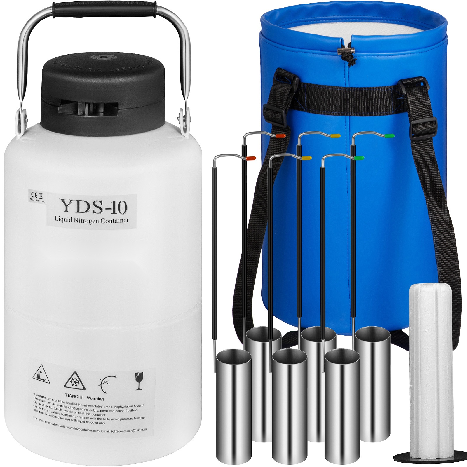 Kryogeeninen nestemäisen typen säiliö 10 l alumiiniseos 6 sisäsäiliötä kantokahvalla