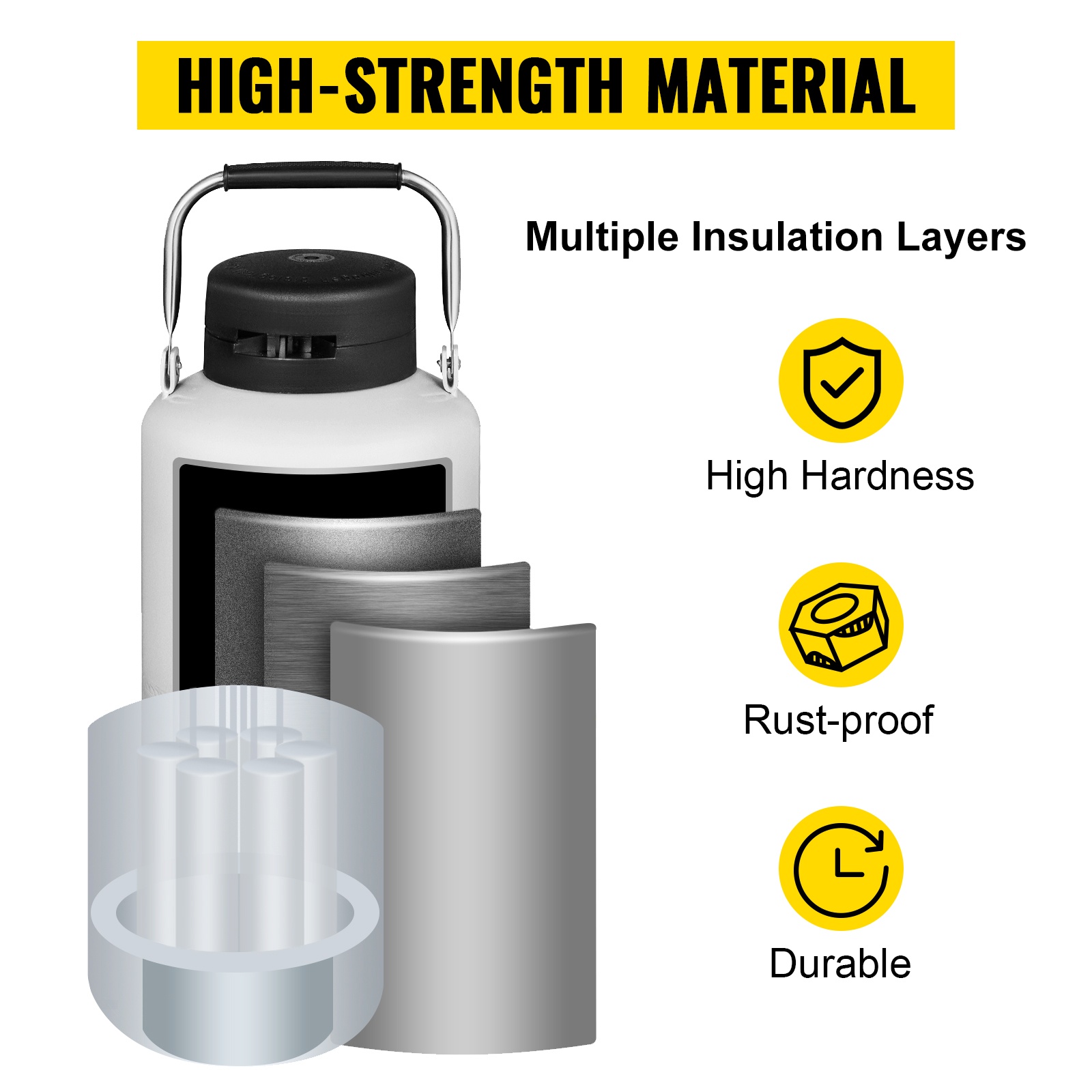 Lukittava kansi vähentää nestemäisen typen haihtumista. Vahvistettu kantokahva helpottaa siirtämistä, ja pullon tulpan sisus on valmistettu PU-materiaalista.