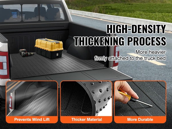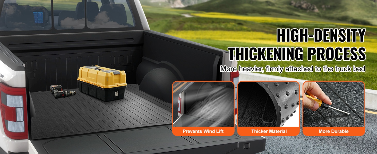 Korkeatiheyksinen ja paksunnettu kumirakenne tuntuu samanaikaisesti joustavalta ja jämäkältä. Maton oma paino auttaa sitä pysymään tukevasti paikoillaan avolavalla myös suuremmissa nopeuksissa ja tuulisissa olosuhteissa.