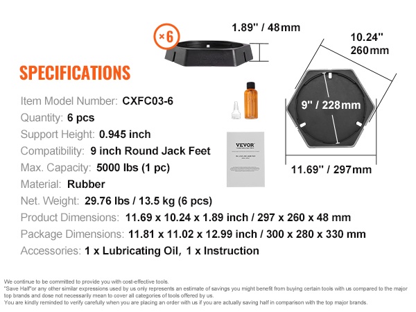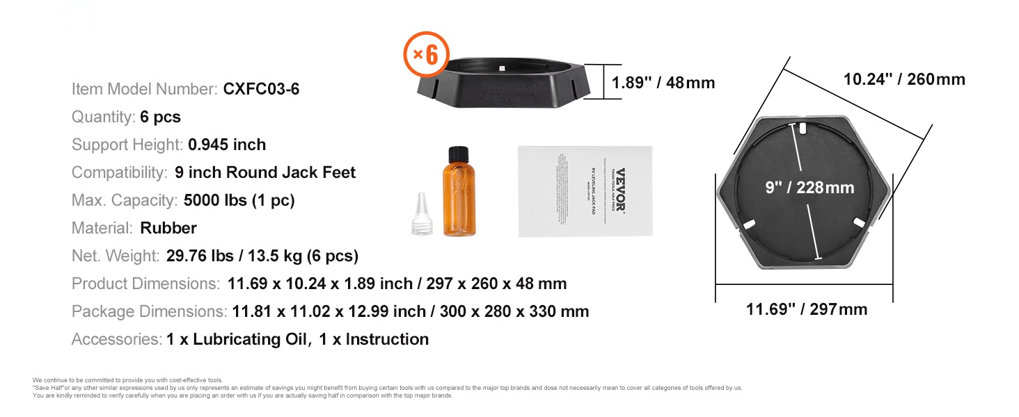Kumiset tunkkijalkatyynyt 9 tuuman pyöreille tunkkijaloille 6 kpl 5000 paunan kantavuudella