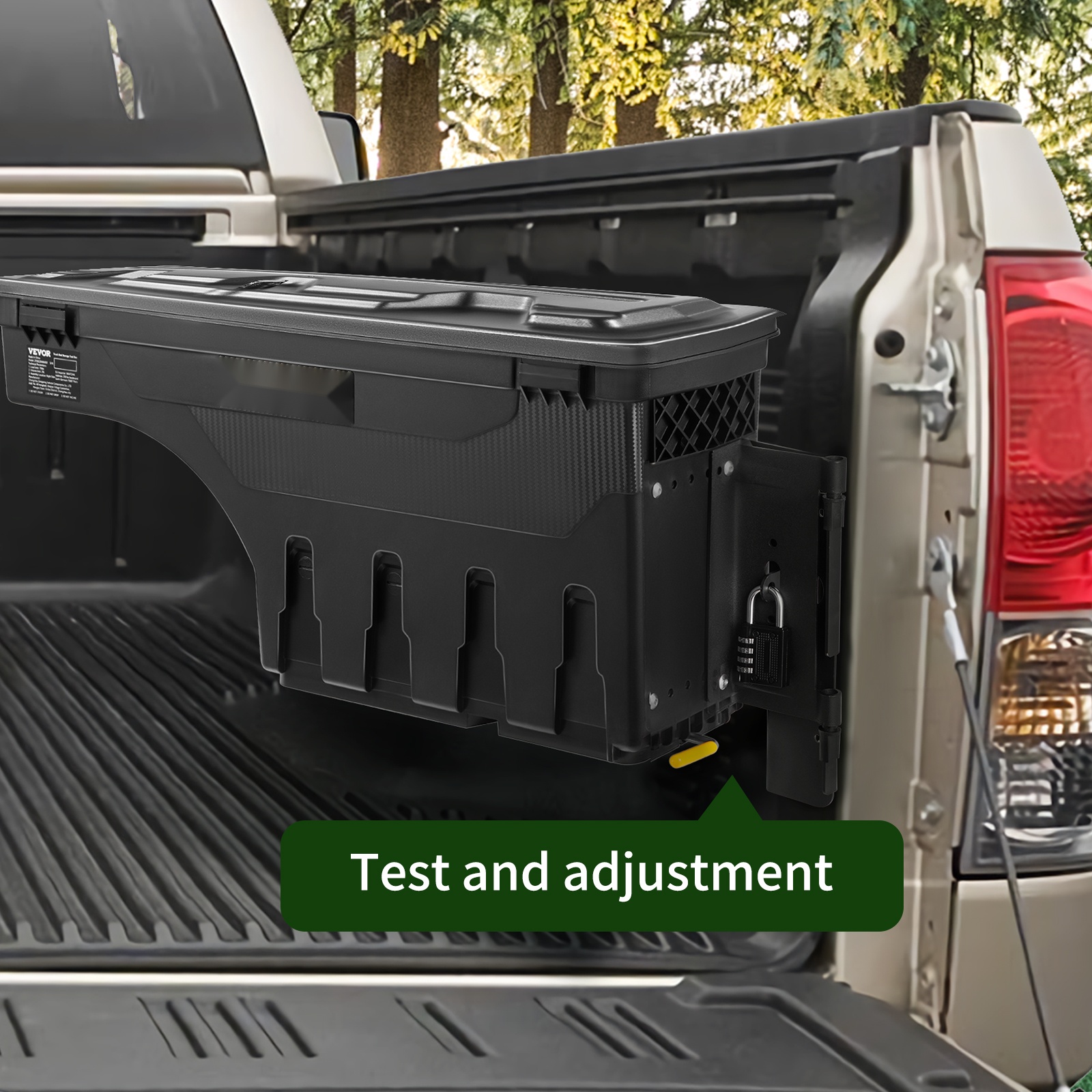 Säilytyslaatikko voidaan asentaa joko kuljettajan tai matkustajan puolelle. Laatikko liukuu ulos ja sisään, joten tavaroihin pääsee käsiksi ilman, että tarvitsee kiivetä lavalle.