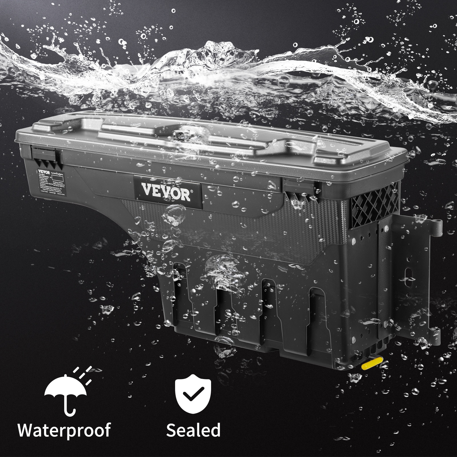 Paksusta ABS-muovista valmistettu laatikko kestää kovaa käyttöä ja vaihtelevia sääolosuhteita. Tiivis rakenne auttaa pitämään sisällön kuivana ja suojassa lialta.