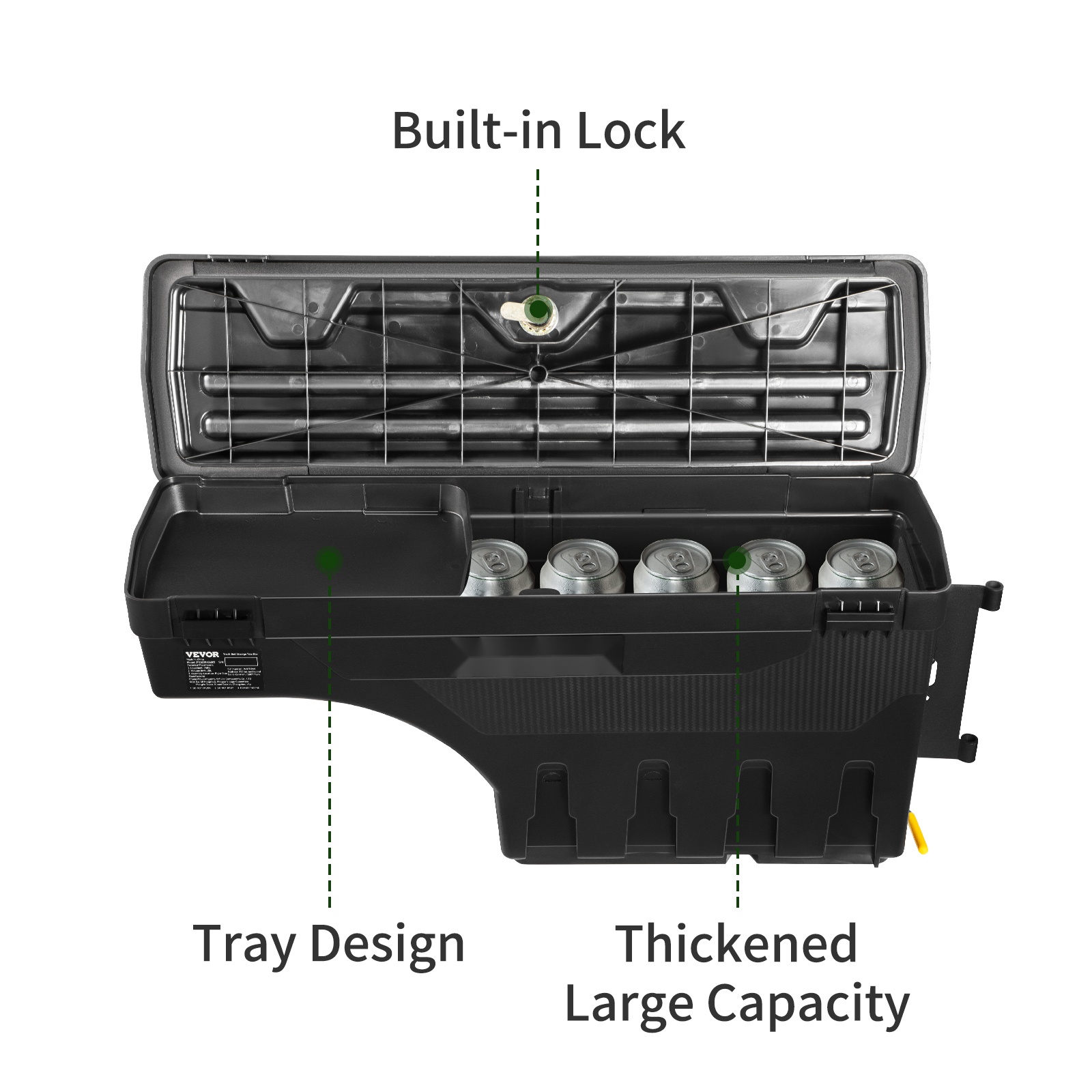 Kansi lukittuu avaimella, mikä vähentää varkauden riskiä. Mukana tuleva pieni tavaralokerikko helpottaa pienten esineiden järjestelyä, jotta kaikki löytyy nopeasti.
