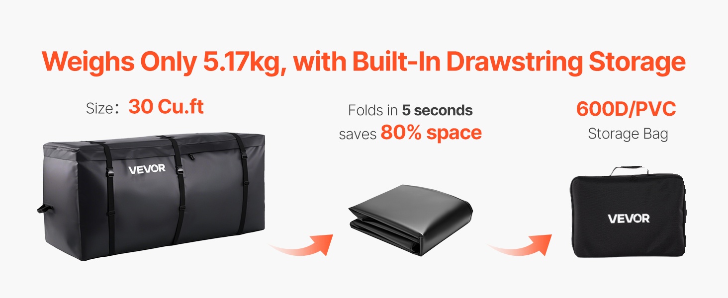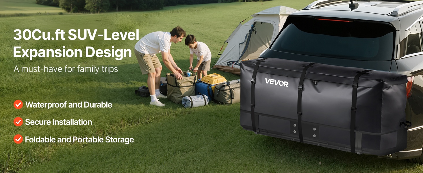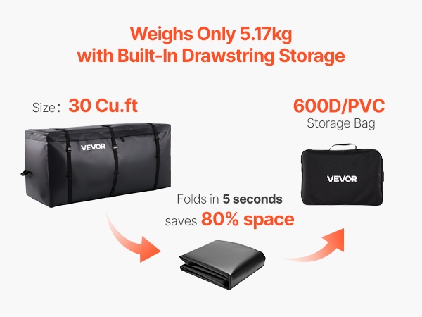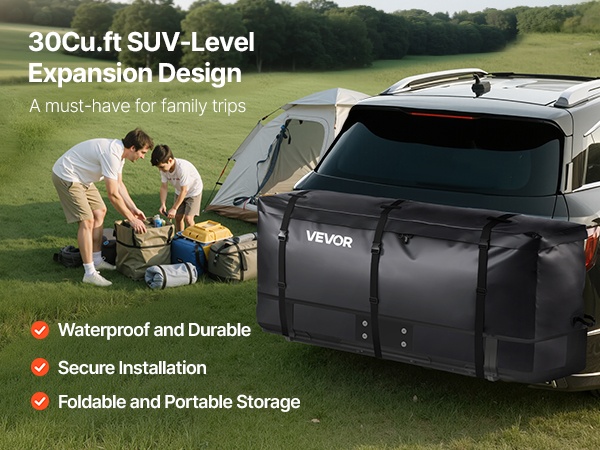 Tämä kuormapussi tarjoaa jopa 26Cu.ft (kuutiojalkaa) lisätilaa matkatavaroille, teltoille, rattaille ja muulle varustukselle. Se on suunniteltu lava-autoihin ja moniin SUV-maastureihin, ja suojaa tavaroita sateelta, lumelta ja tieolosuhteiden roiskeilta.