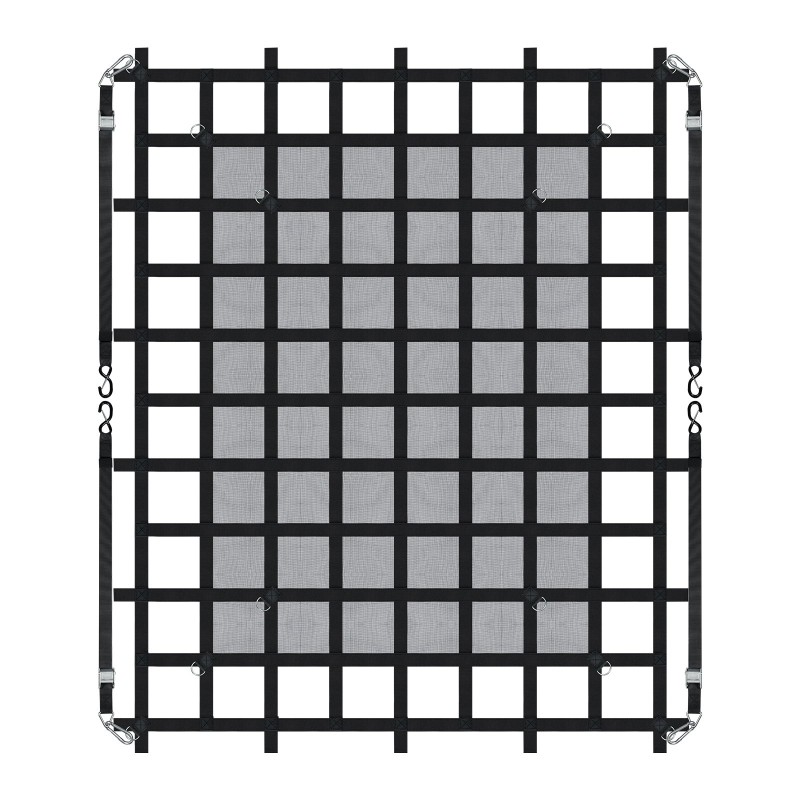 Mukana tulevien S-koukkujen avulla verkko kiinnitetään ajoneuvoon ilman erillisiä työkaluja. Säädettävät teleskooppihihnat, joiden pituus on jopa 59 in / 1500 mm, pitävät kuorman paikoillaan moniasentoisten solkien pitävällä puristuksella.Tiheä verkko kuorman suojaksi: