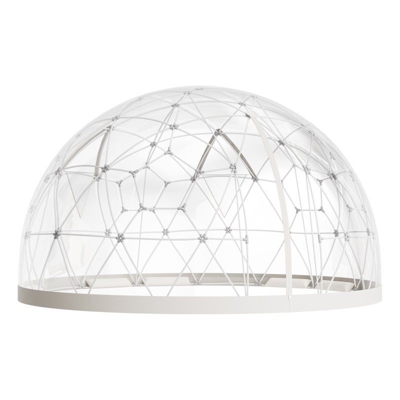Kupoli luo suojaisan lisätilan, jota voi käyttää istuskeluun, ruokailuun, juhliin tai kasvien suojaamiseen. Neutraali valkoinen reunus ja läpinäkyvät seinät sulautuvat monenlaisiin piha- ja terassiympäristöihin.