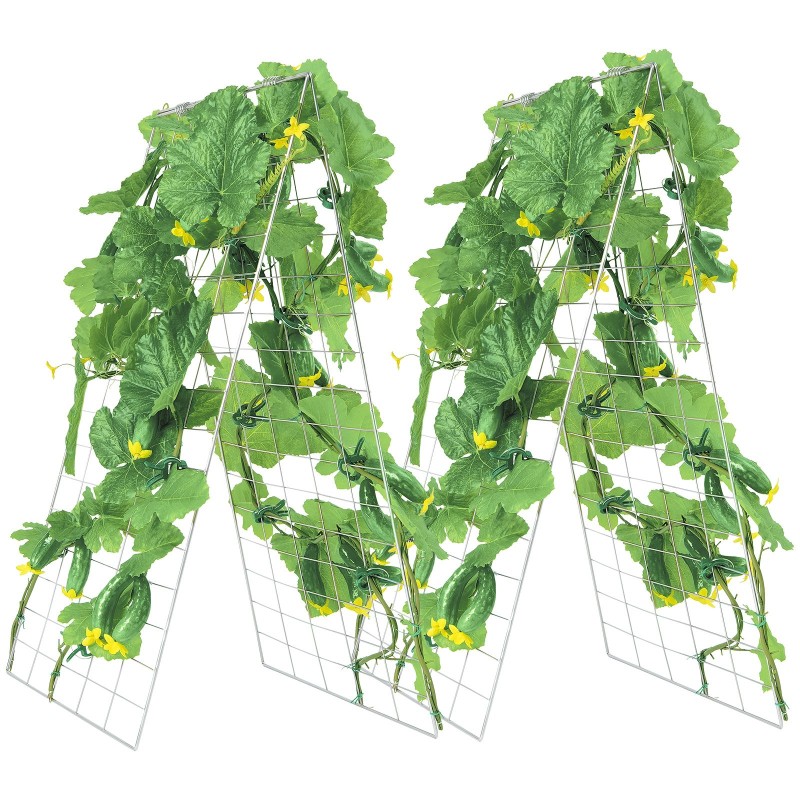 Tämä kurkkutuki sopii useille köynnöstäville kasveille: kurkuille, tomaateille, kurpitsoille, viinirypäleille ja monille muille vihanneksille. Se on kätevä valinta niin korotettuihin penkkeihin kuin avomaallekin.