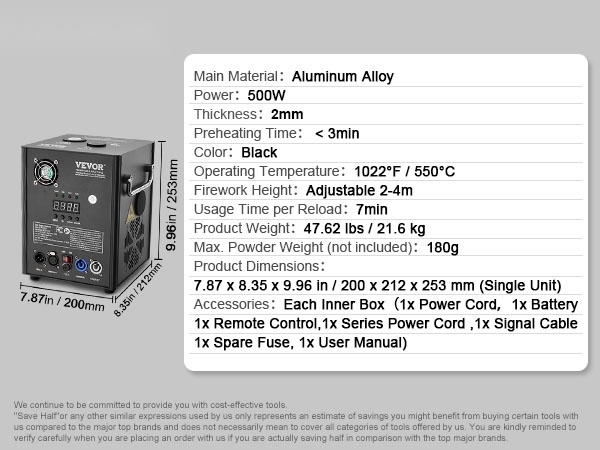 Kylmä kipinälaite on valmistettu korkealaatuisesta alumiiniseoksesta, joka kestää käyttöä ja kulutusta. Rungon rakenne on suunniteltu tukevaksi ja pintakäsittely viimeistellyksi, mikä parantaa ulkonäköä ja suojaa laitetta, sekä auttaa pidentämään sen käyttöikää.