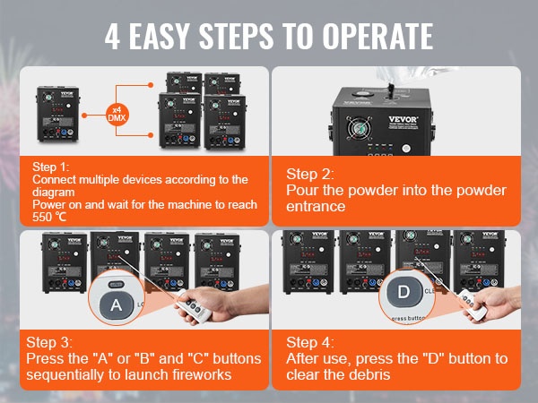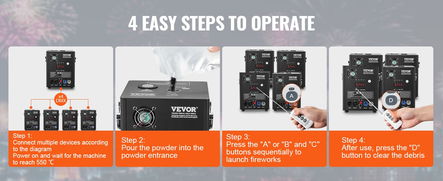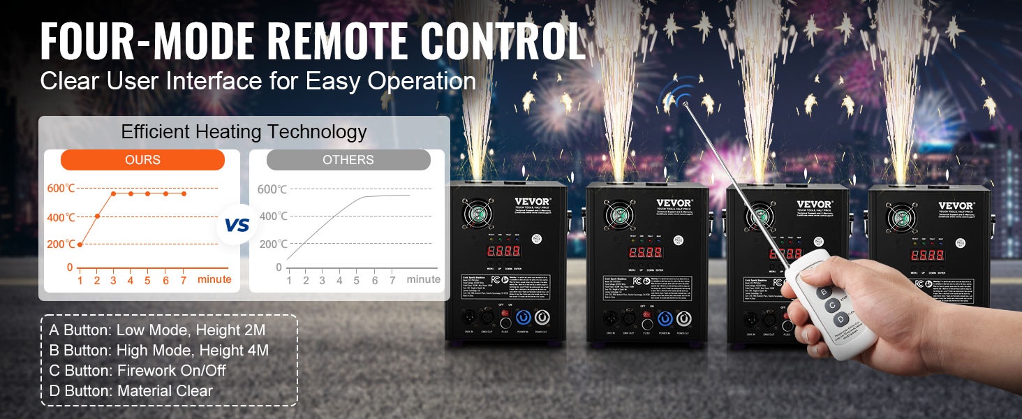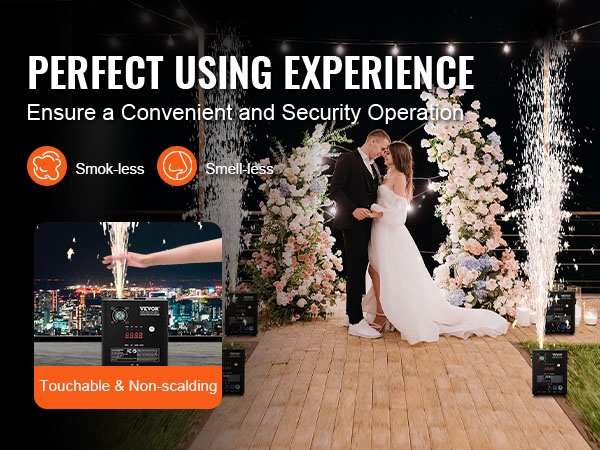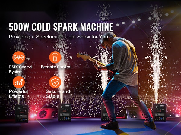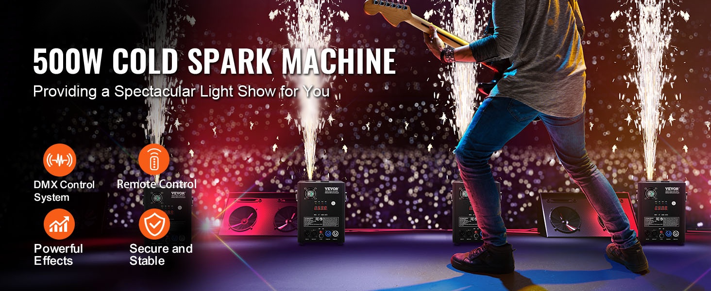 Tehokas kylmä kipinälaite luo näyttäviä, mutta matalalämpöisiä kipinäsuihkuja erilaisiin tilaisuuksiin. Paketissa on 2 laitetta, joiden kipinäkorkeus on säädettävissä ja ohjaus onnistuu sekä langattomalla kaukosäätimellä että edistyneellä DMX-järjestelmällä.