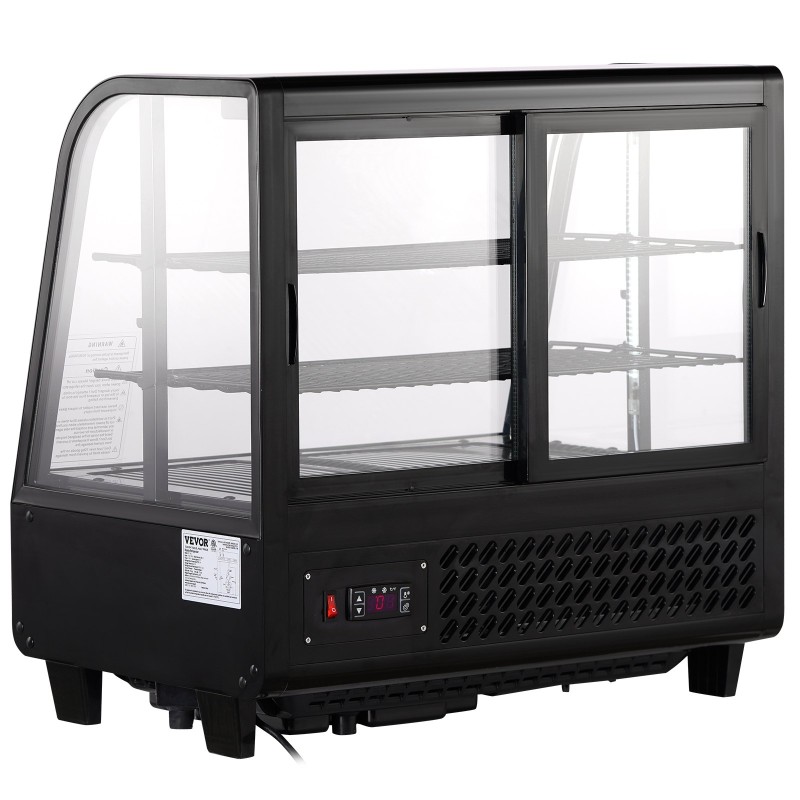 Kylmävitriini pöytätasolle 100 l kaksitasoinen LED-valaistus huurtumaton ilmankierto takaliukuovi kakkujen esillepanoon