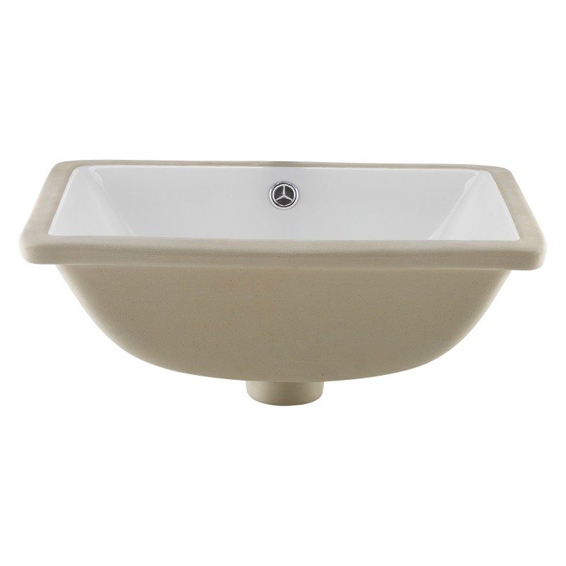 Tämä suorakulmainen, alta-asennettava kylpyhuoneallas säästää tilaa ja sopii erityisesti pieniin kylpyhuoneisiin ja moderneihin sisustuksiin. Valkoinen keraaminen allas sulautuu monenlaisiin tyyleihin ja tarjoaa käytännöllisen, helppohoitoisen pesupisteen.
