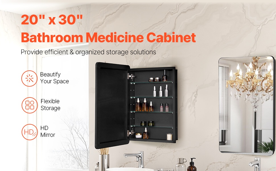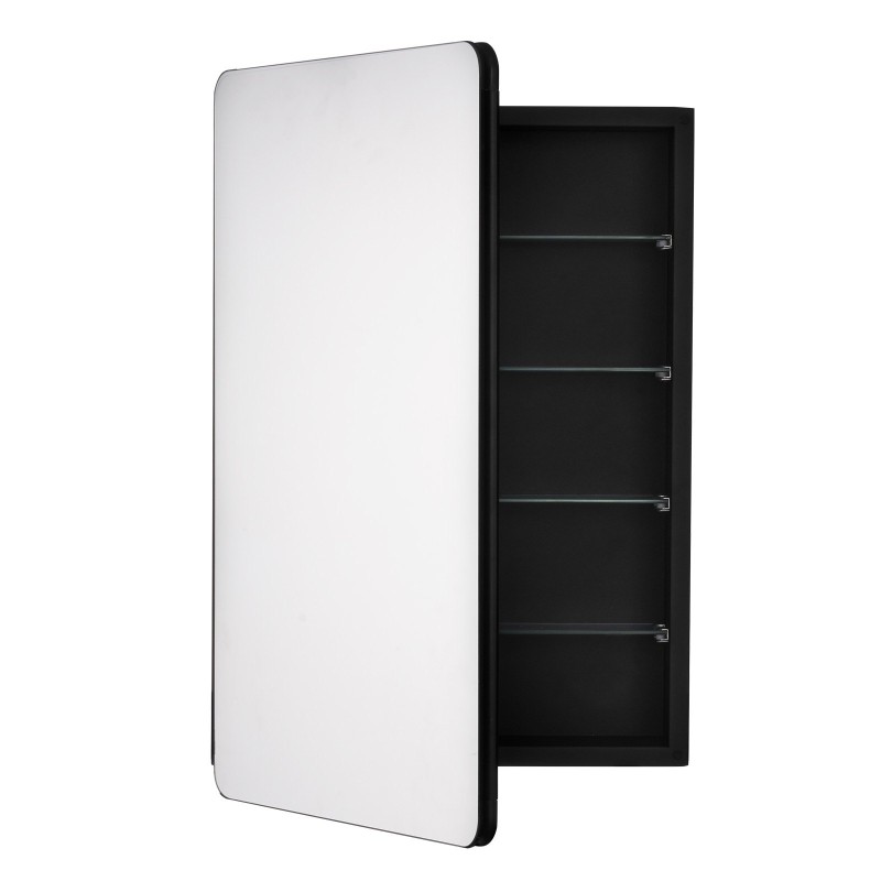 Tämä seinälle asennettava tai upotettava lääkekaappi yhdistää selkeän peilin ja käytännöllisen säilytystilan. Neljä säädettävää hyllytasoa auttavat pitämään lääkkeet, hygieniatuotteet ja kosmetiikan siististi järjestyksessä myös pienessä kylpyhuoneessa.