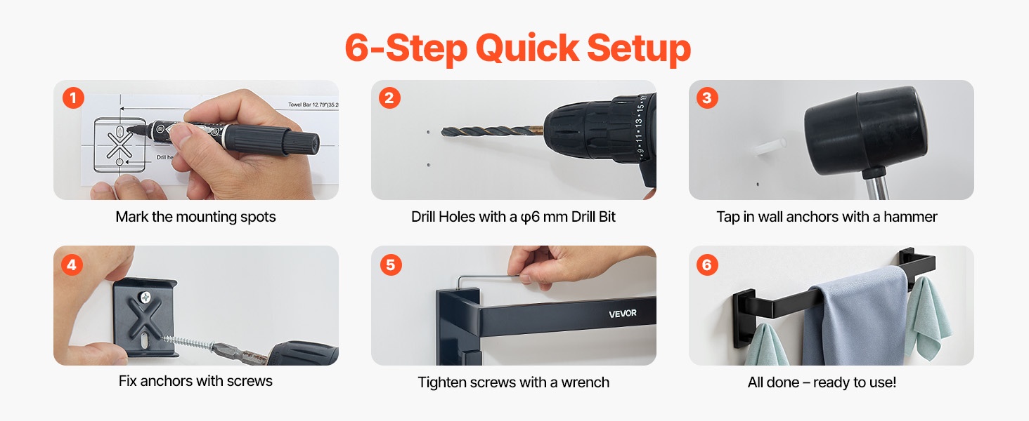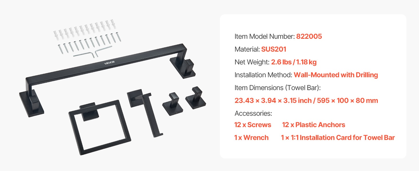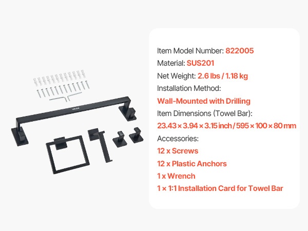 - Setti sisältää: 16-tuumaisen pyyhetangon, pyyhetelineen, 2 koukkua ja wc-paperitelineen