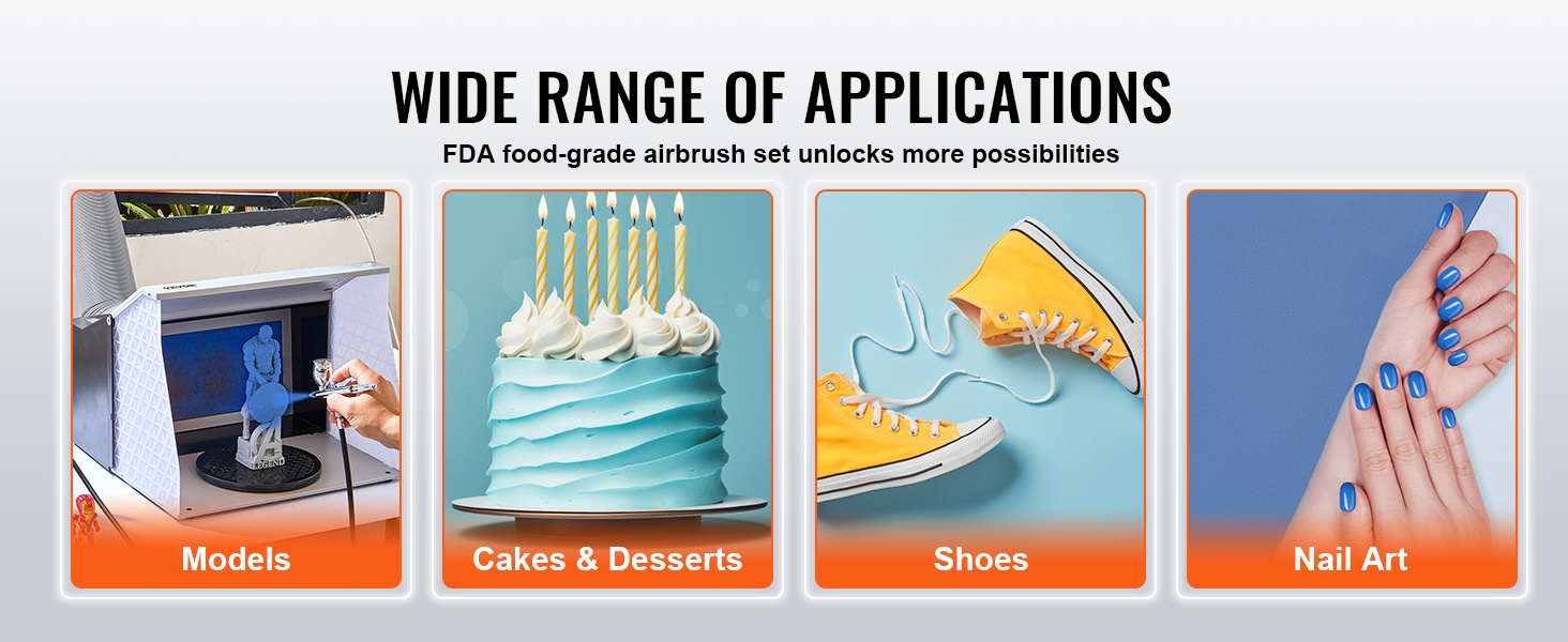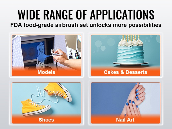 FDA-elintarviketurvallisuussertifioitu kynäruiskusarja soveltuu elintarvikekäyttöön, kuten kakkujen ja jälkiruokien koristeluun, ja on turvallinen myös lasten käytössä aikuisen valvonnassa. Lisäksi sitä voi käyttää mallien väritykseen, kynsitaiteeseen, meikin levitykseen, graffitimaalaukseen ja vartalomaalaukseen.