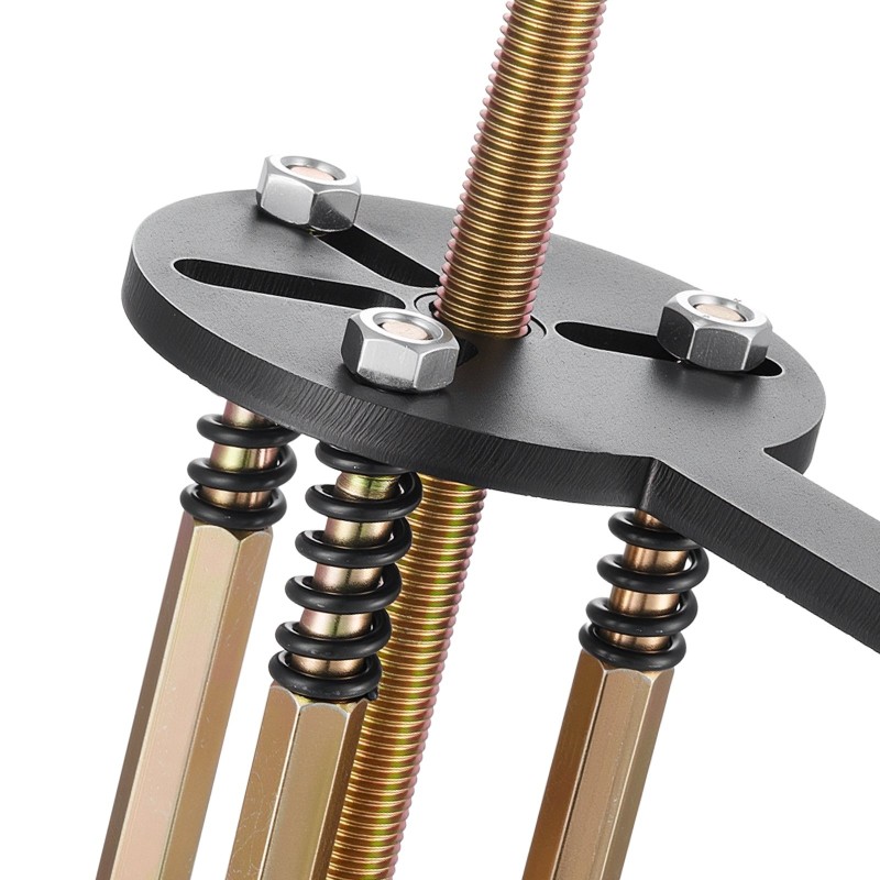 Valitse sopivan kokoinen koukkunostin ja apuetäisyyskappaleet, aseta leukaparit laakeriin tai sen taakse ja kiristä ruuvia tasaisesti, kunnes laakeri irtoaa. Säilytä kaikki osat mukana tulevassa säilytyslaatikossa, jotta sarja on aina käyttövalmis.