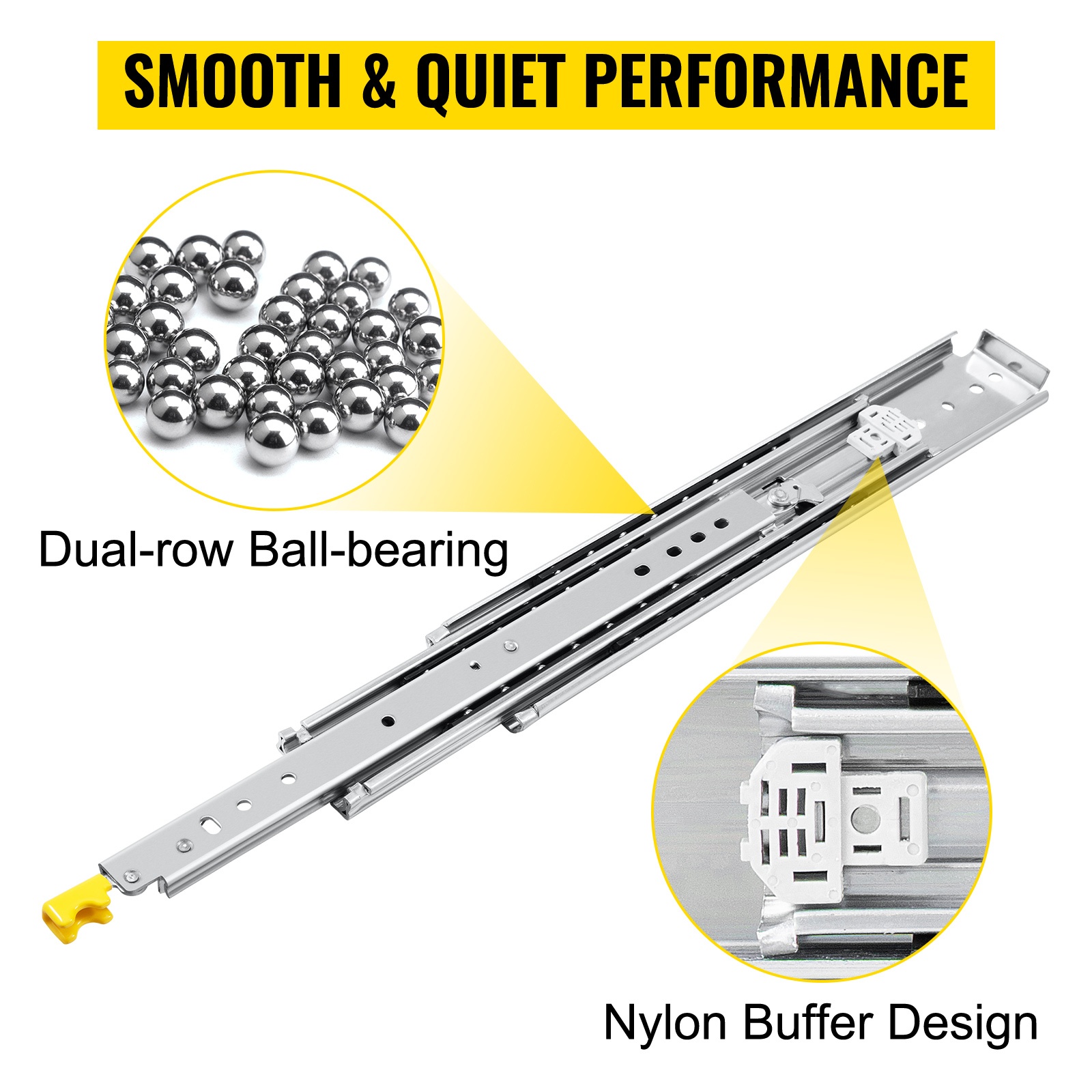 Raskaaseen käyttöön suunnitellut, kylmävalssatusta teräksestä valmistetut laatikkokiskot, joiden kantavuus on jopa 227 kg. Kolmiosainen täysulosveto, kuulalaakerointi ja lukitus sekä suljetussa että täysin avatussa asennossa tekevät käytöstä vakaata ja hallittua.
