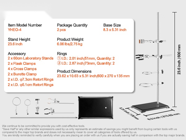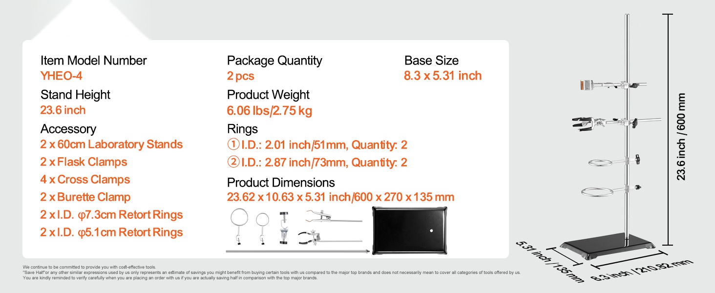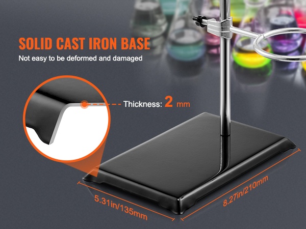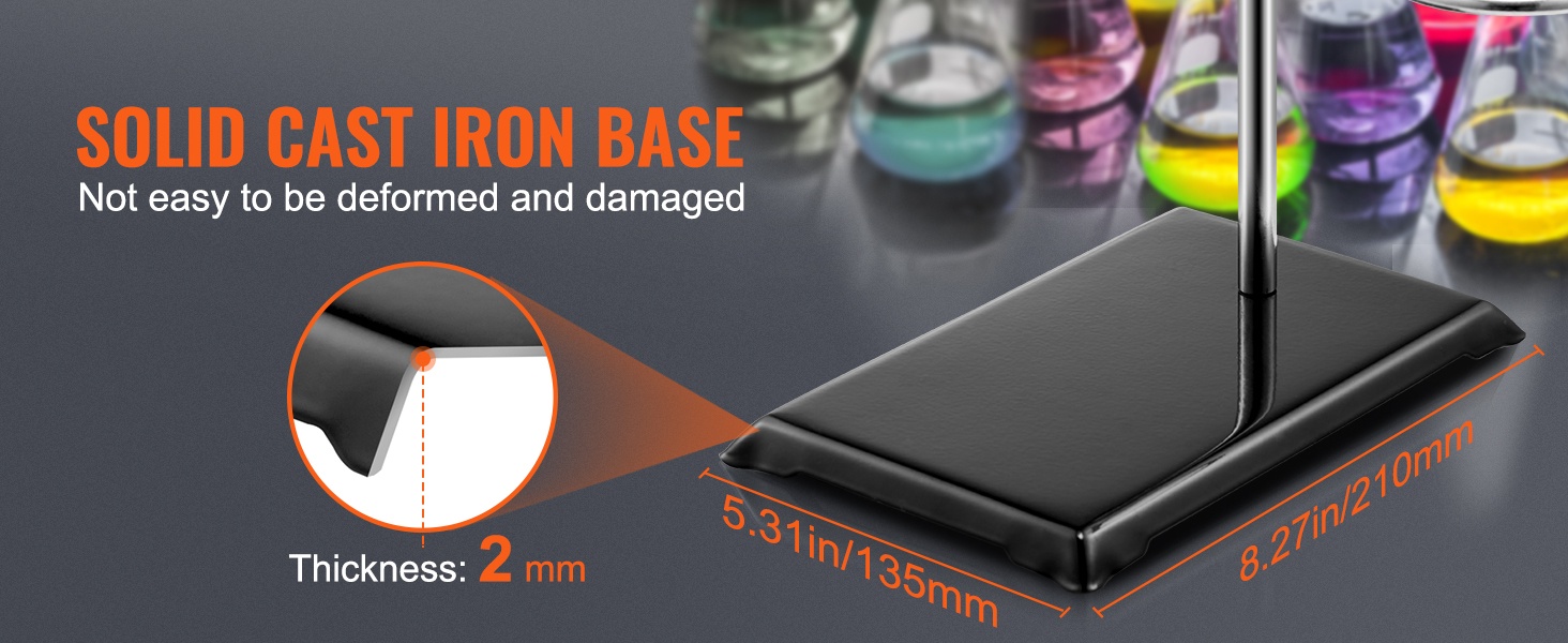 Valurautainen jalusta tarjoaa hyvän vakauden ja kestää painetta sekä kulutusta vääntymättä tai vaurioitumatta. Tämä auttaa pitämään koejärjestelyn tukevana ja turvallisena koko kokeen ajan.