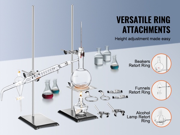 Renkaallisten pidikkeiden korkeutta voidaan säätää vapaasti kokeen vaatimusten mukaan. Näin koeputket tai kolvit saadaan helposti sopivalle tasolle esimerkiksi tislaus- ja lämmitysoperaatioita varten.