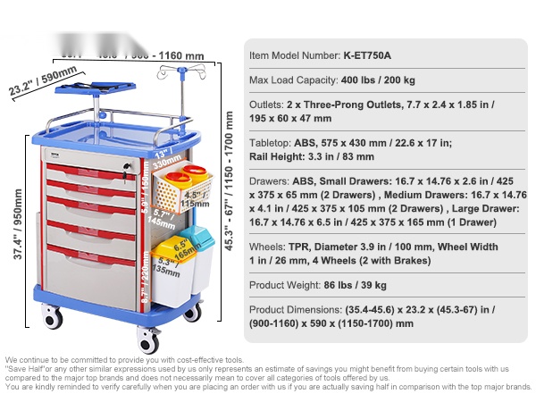 Tukevalla rakenteella, viidellä vetolaatikolla ja hiljaisilla pyörillä varustettu laboratoriovaunu helpottaa tarvikkeiden järjestämistä ja siirtämistä laboratoriossa, klinikalla, sairaalassa tai salongissa.