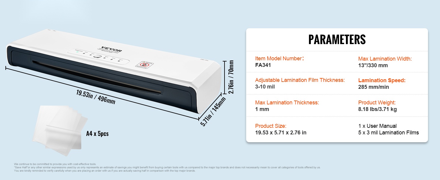 - Maksimilaminointileveys: 13"/330 mm