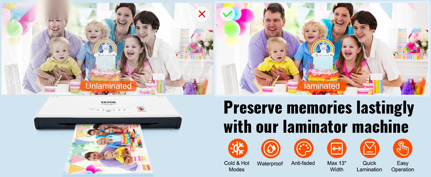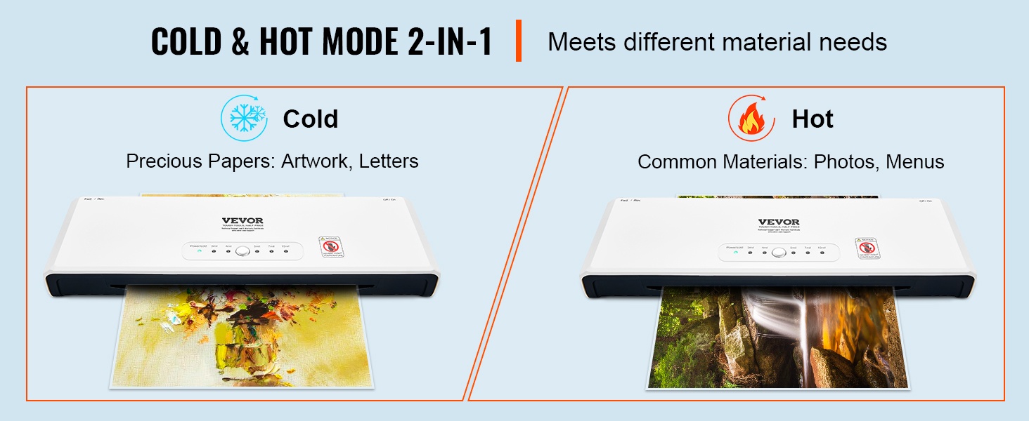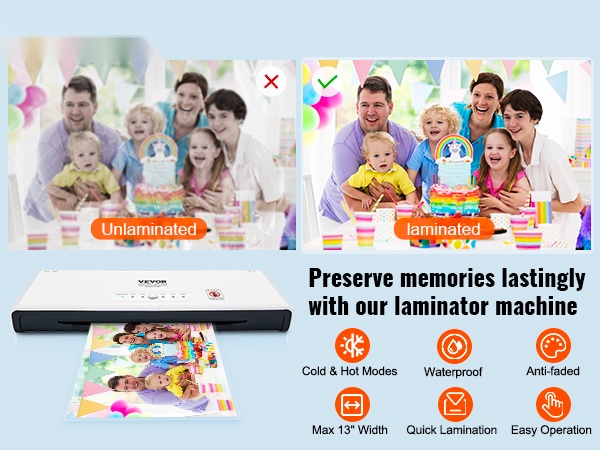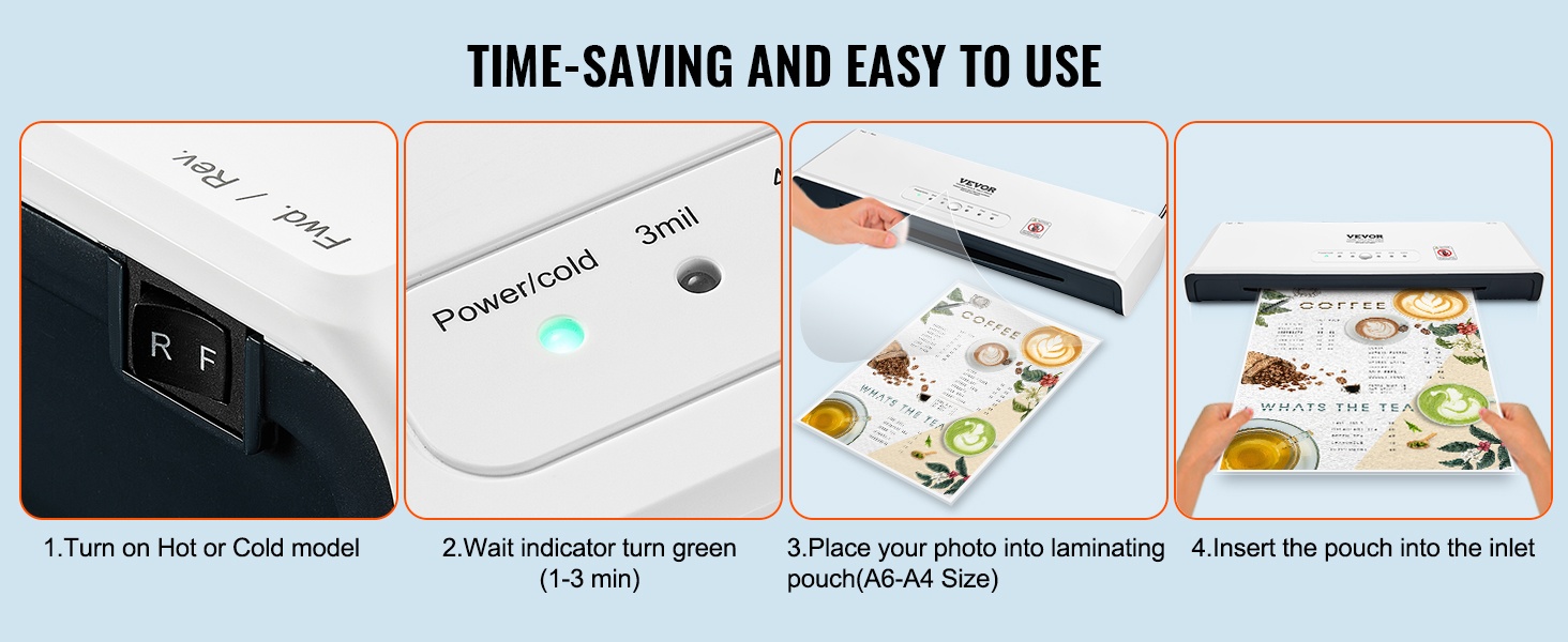 Tämä 2-in-1 kuuma- ja kylmälaminointilaite tarjoaa helpon yhden painikkeen käytön ja nopean esilämmityksen, jolloin laminointi onnistuu noin 1–2 minuutissa. Laminoidut sivut pysyvät sileinä, vedenkestävinä ja pölyltä suojattuina. 4-rullainen rakenne soveltuu hyvin esimerkiksi taideteoksille, todistuksille, henkilökorteille ja valokuville.