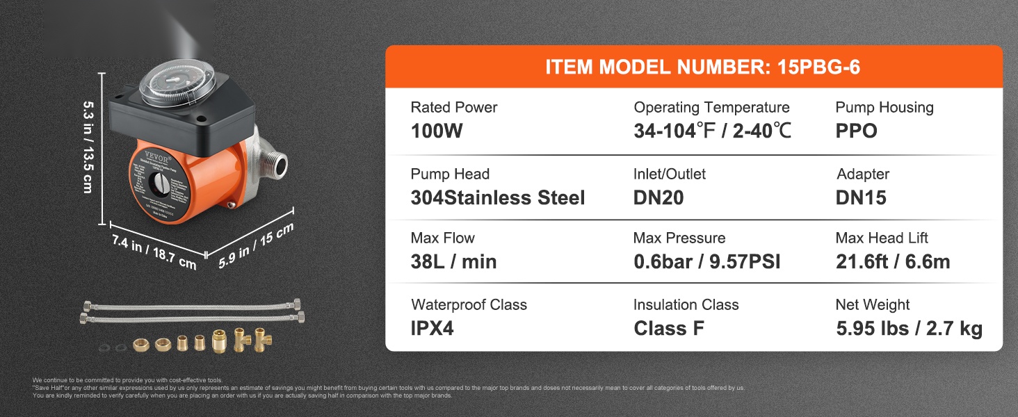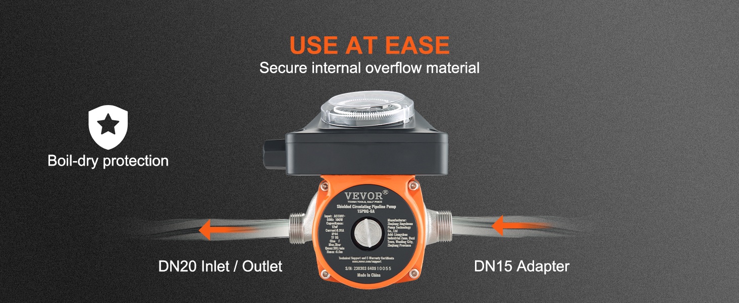 Pumppu täyttää Class F -eristysluokan ja IPX4-suojauksen vaatimukset. Tämä tekee siitä sopivan päivittäiseen käyttöön erilaisissa kotitalouksien lämmintä vettä hyödyntävissä järjestelmissä, kuten omakotitaloissa, etätyöpisteissä, mökeillä ja muissa kohteissa.