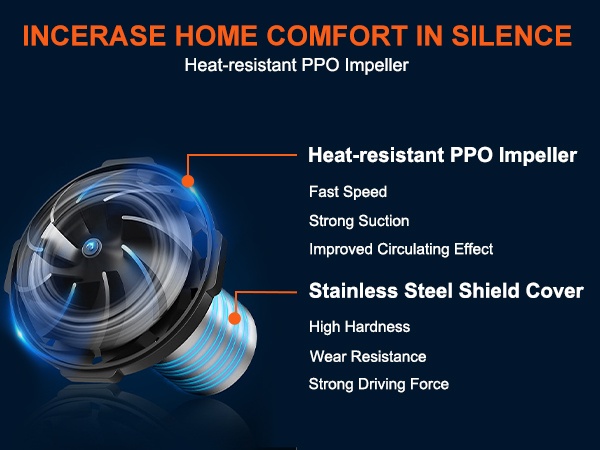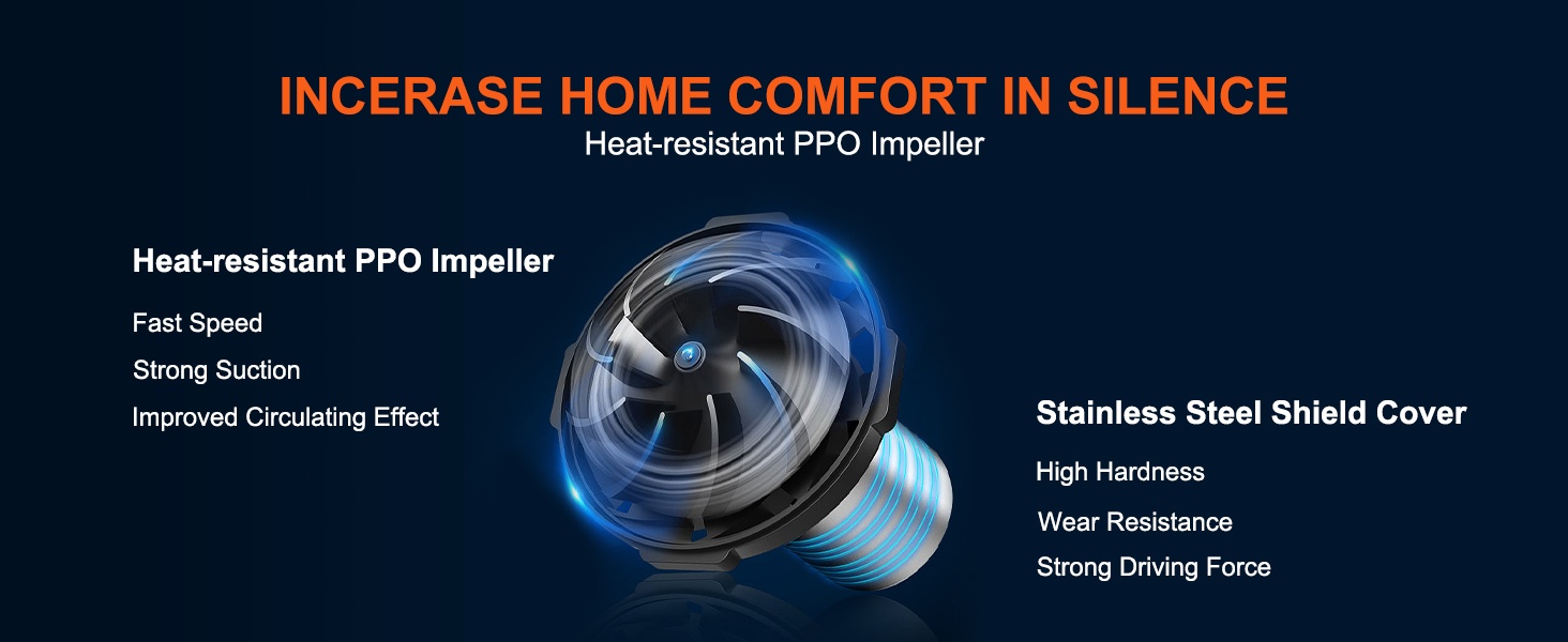 Vahva moottori takaa tasaisen suorituskyvyn, ja rakenteen ansiosta käyntiääni on erittäin alhainen – keskimäärin vain 3 dB. Pumppu sopii asennettavaksi myös tiloihin, joissa melutaso halutaan pitää mahdollisimman pienenä.