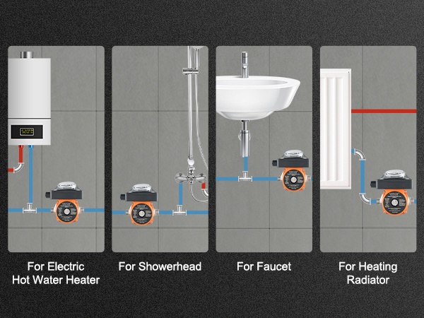 Pumppu on helppo asentaa erilaisiin laitteisiin ja sähkö- tai kaasukäyttöisiin lämminvesijärjestelmiin. Asennuksessa on tärkeää varmistaa, että pumpun akseli jää vaakasuoraan, jotta käyttöikä ja toiminta pysyvät optimaalisina.