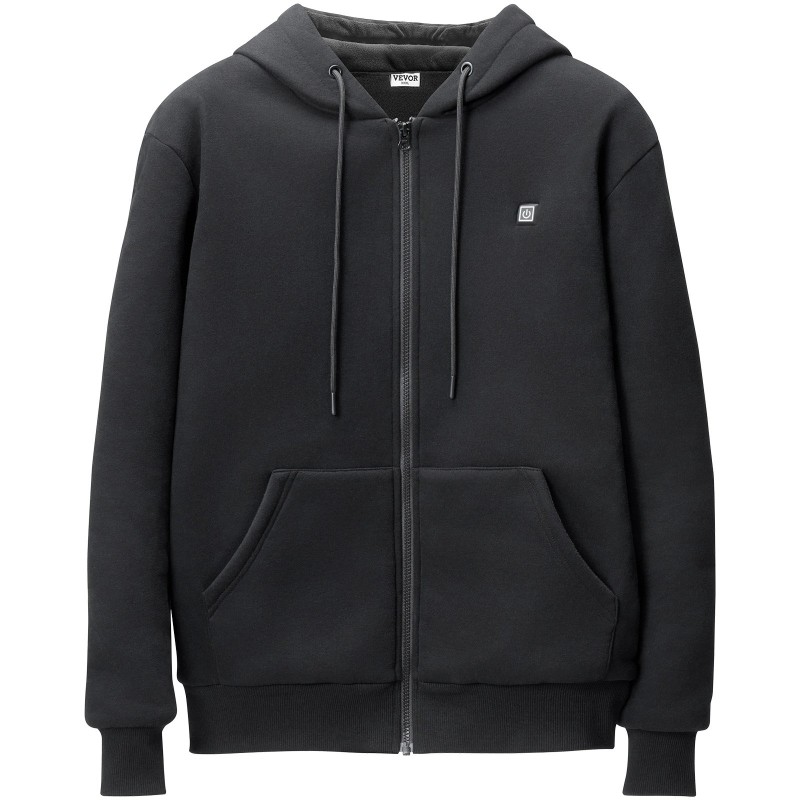 Lämmitettävä huppari viisi lämmitysvyöhykettä puuvilla polyesteri fleecevuori koko S musta