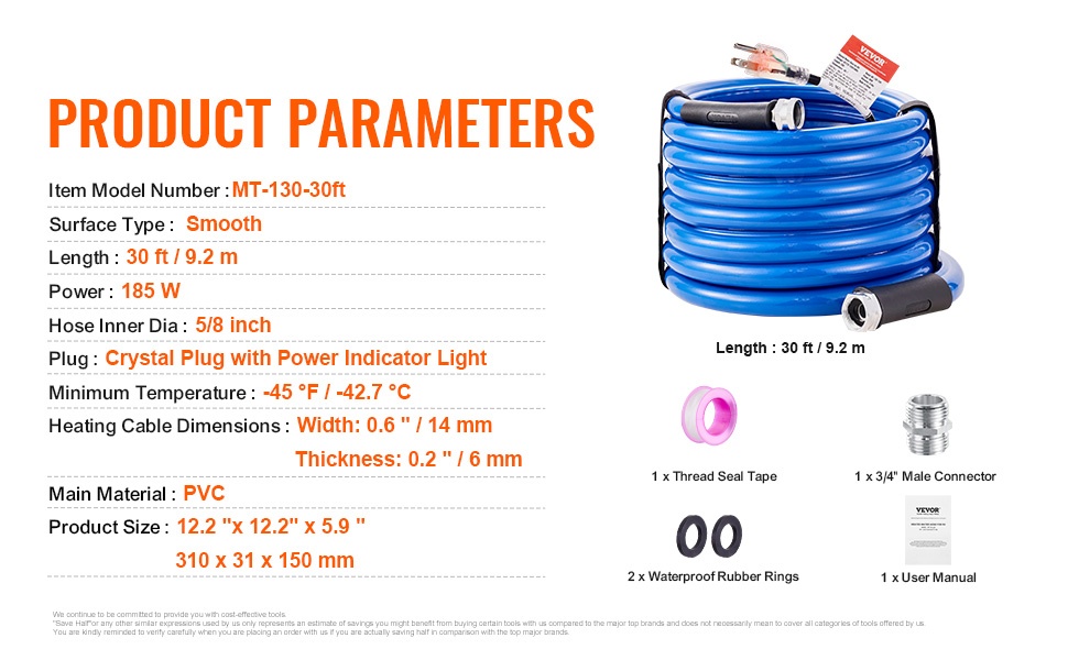 Lämmitettävä vesiletku mahdollistaa juoma- ja käyttöveden käytön talvipakkasilla jopa lämpötiloissa -45°F/-42.7℃. Letku sopii erityisesti matkailuautoihin, leirintään ja muuhun ulkokäyttöön, kun halutaan estää veden jäätyminen.