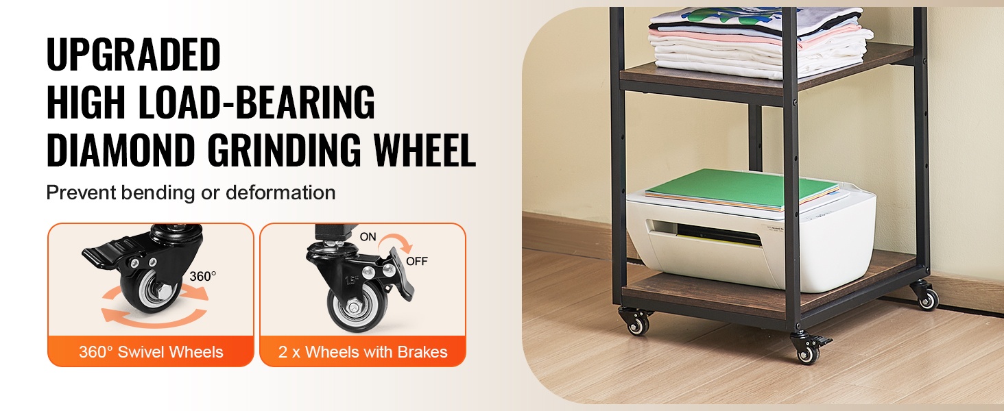 Pöydässä on neljä raskaan käytön teollisuuspyörää, joista kahdessa on lukitus. Pöydän voi siirtää vaivattomasti työpisteelle ja lukita paikoilleen käytön ajaksi. Kun pöytä ei ole käytössä, sen voi työntää sivuun tai nurkkaan.
