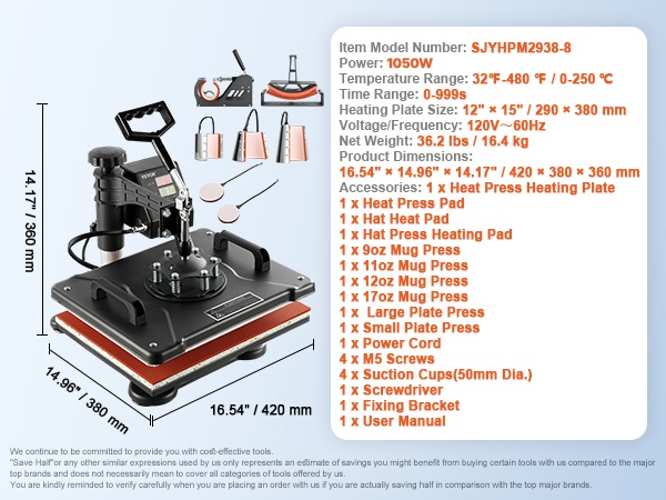 - Mukana täydelliset lisävarusteet T-paitojen, mukeiden, hattujen ja lautasten sublimaatiopainoon.