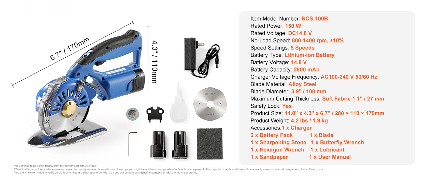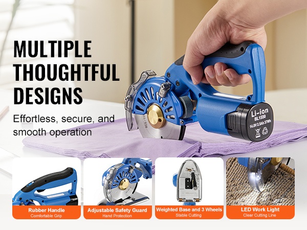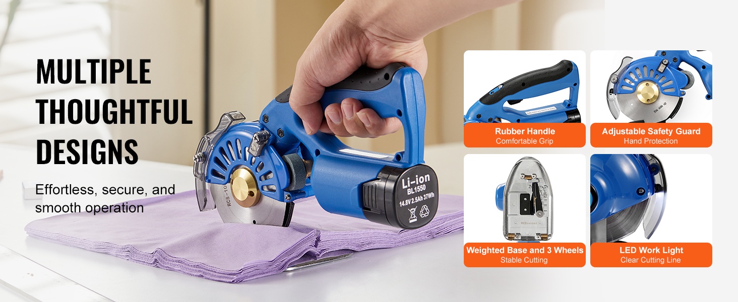 Tämä langaton kankaanleikkuri helpottaa monikerroksisten ja paksujen materiaalien tarkkaa leikkaamista. 5 säädettävän nopeuden ansiosta voit mukauttaa leikkuunopeuden eri tekstiileille kevyistä kankaista farkkuun ja nahkaan. Suurikapasiteettinen akku varmistaa tasaisen tehon ilman jatkuvaa verkkovirtaan kytkemistä.