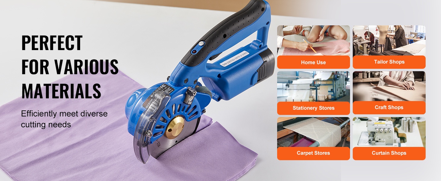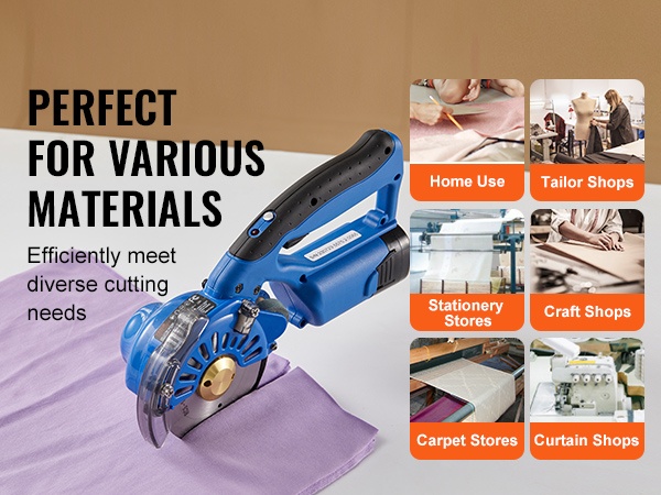 Tehokas sähkökäyttöinen kankaanleikkuri soveltuu kankaiden, puuvillan, silkin, synteettisten kuitujen, nahan ja vastaavien materiaalien leikkaamiseen. Se sopii hyvin ammatti- ja teollisuuskäyttöön esimerkiksi vaateliikkeissä (nahkat, vyöt, laukut), tekstiililiikkeissä (kudonnaiset, nauhat, köydet) sekä paperituotteita käsittelevissä liikkeissä (rasiat, paperituotteet).